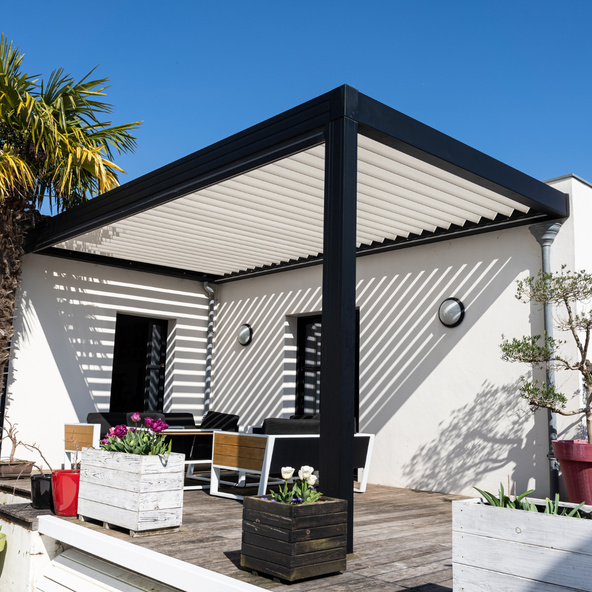 Profitez d’un nouvel espace de vie à l’extérieur, protégé du soleil comme de la pluie. La pergola transforme votre terrasse en un lieu agréable en toute saison.